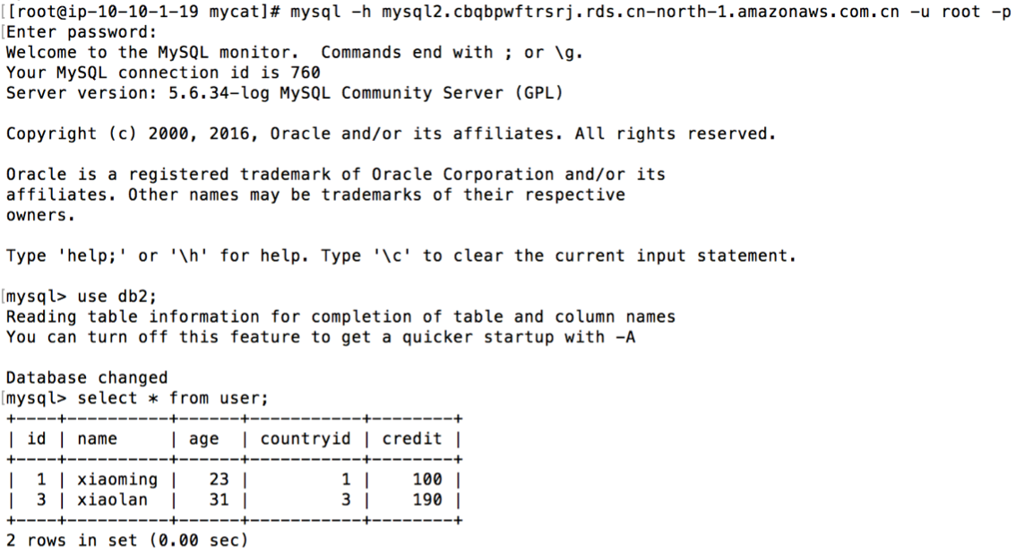 mysql –h mysql1.cbqbpwftrsrj.rds.cn-north-1.amazonaws.com.cn -u root –p