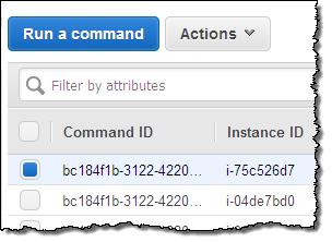 显示屏上的每一行代表在一个实例上已经被运行过的一个命令。点击Run a command,开始一个新命令: