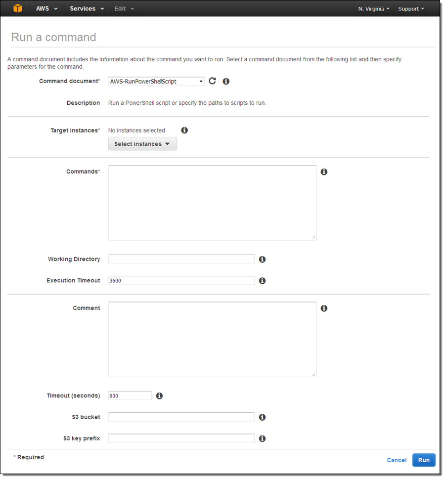 Run Command可以跨越你所有的Windows实例运行,使用实例上既存的EC2Config代理。打开Console,选择Commands,回顾使用Run Command的前提条件: